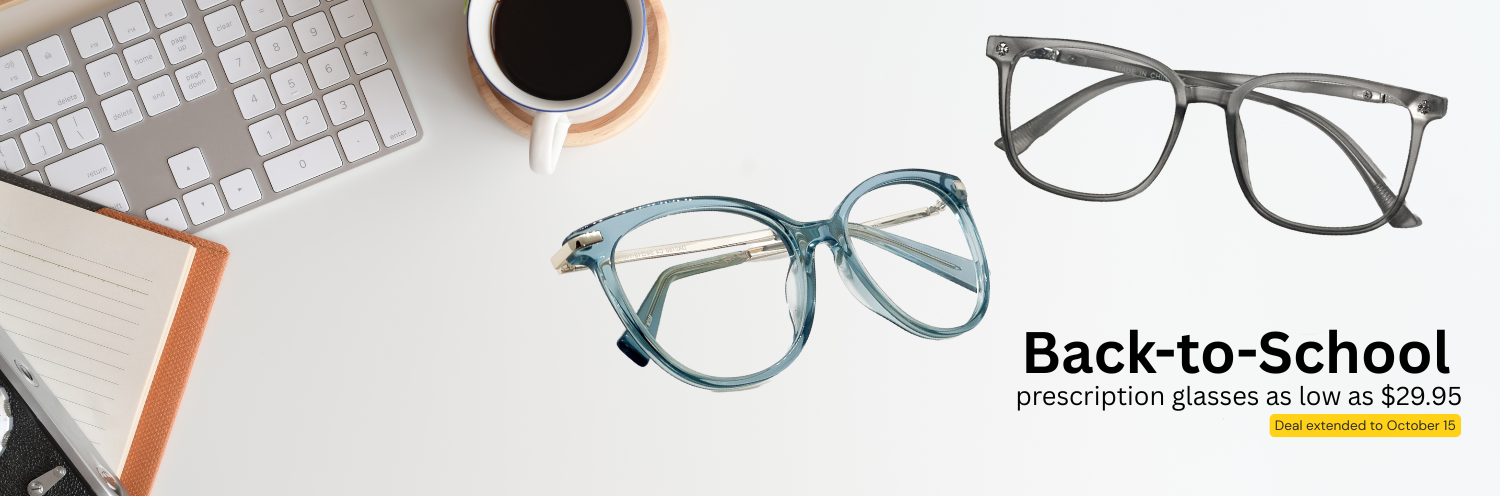 Prescription Glasses + Blue Light Filter (optional) for as low as $29.95