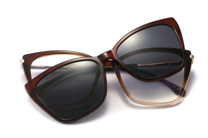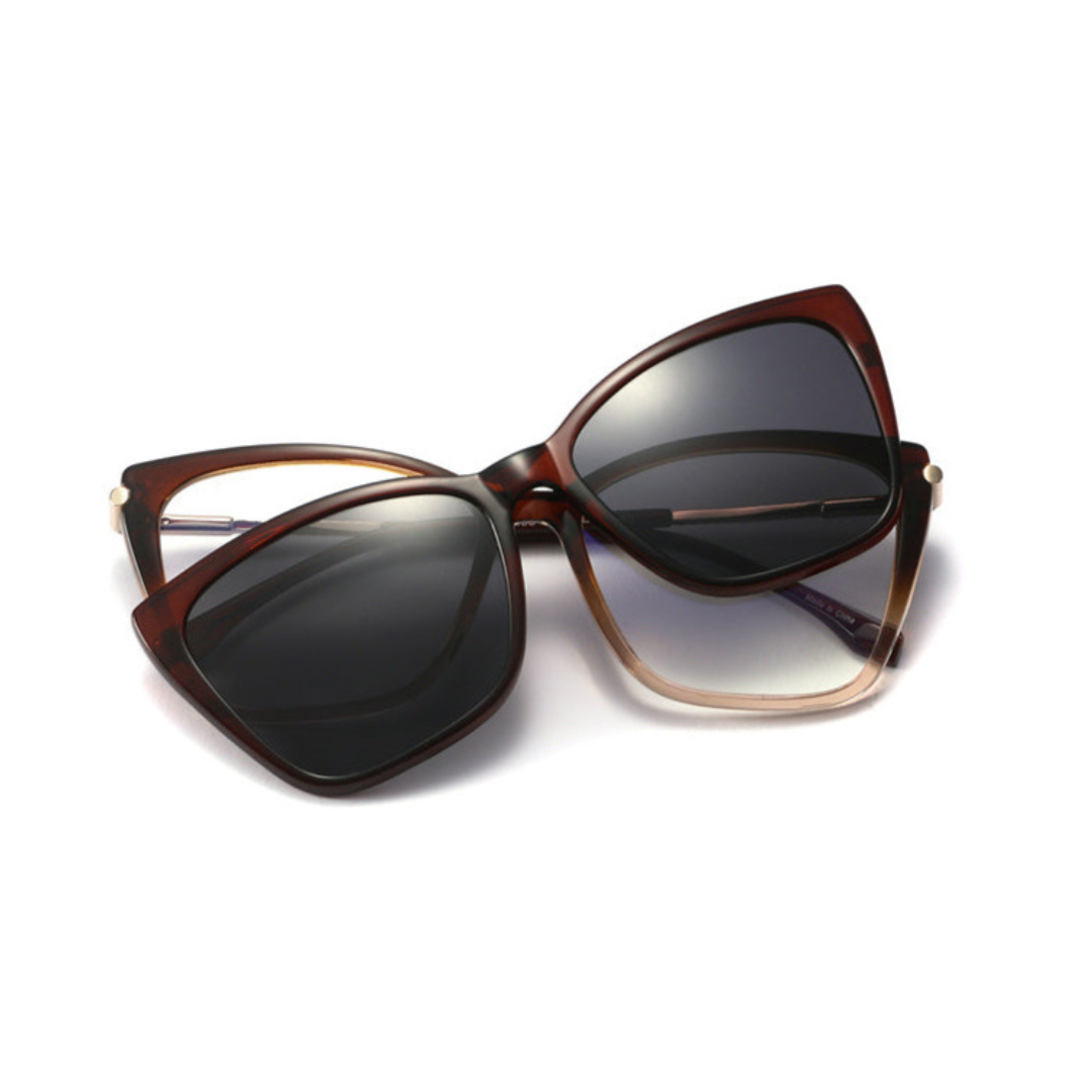 Experience everyday ease with these ultra-lightweight TR90 glasses featuring a magnetic clip-on sunshade. Designed for the modern woman, this pair combines elegance with functionality—perfect for both indoor clarity and outdoor UV protection.