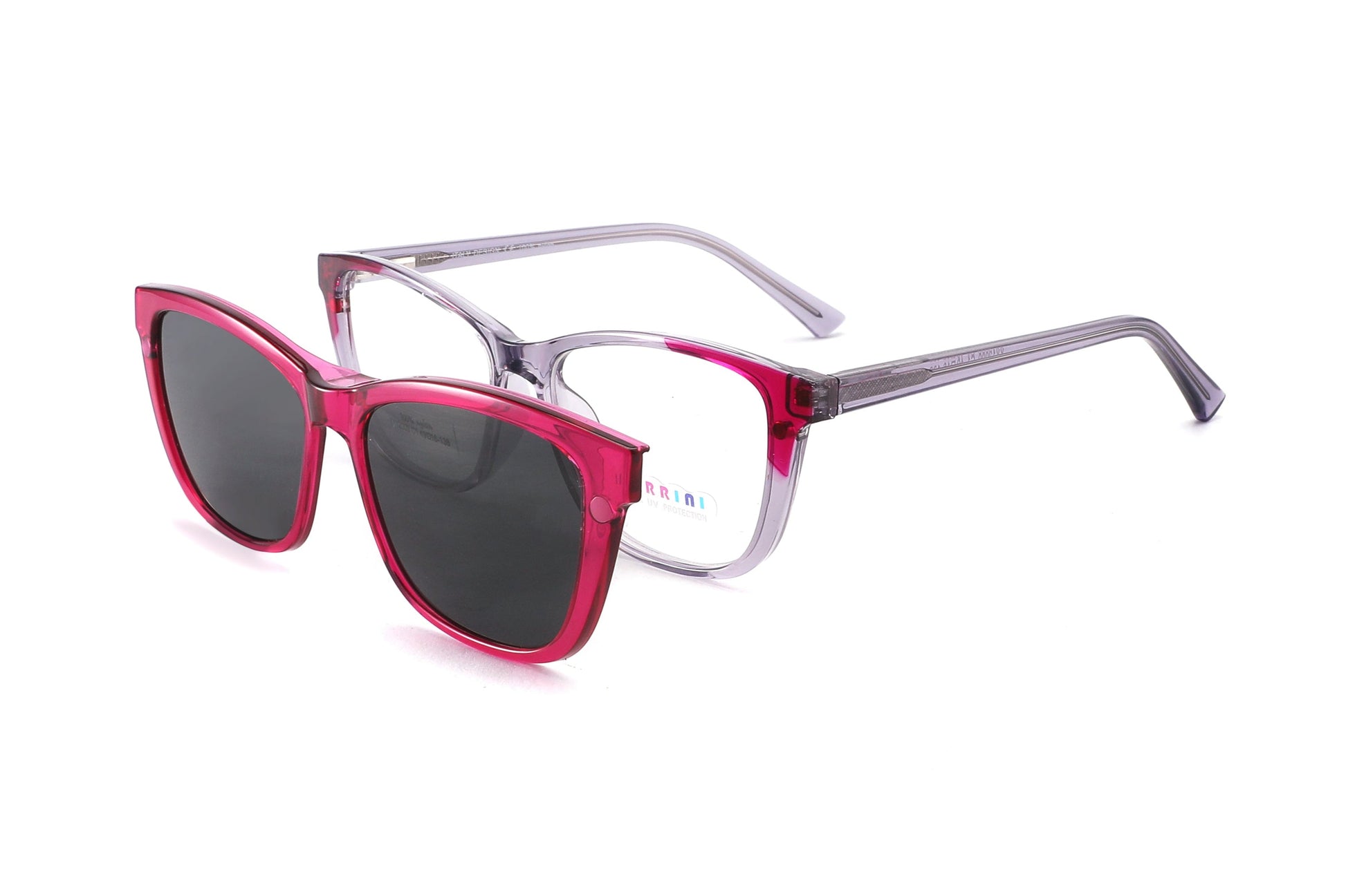 Embrace a pop of color with these vibrant multicolored eyeglasses crafted from Thermoplastic Resin (TR) with comfortable acetate temples. These eyeglasses comes with magnetic clip-on sunglasses lenses for a multifunctional 2-in-1 eyewear. Stand out with their bold, bright hues and contemporary design!