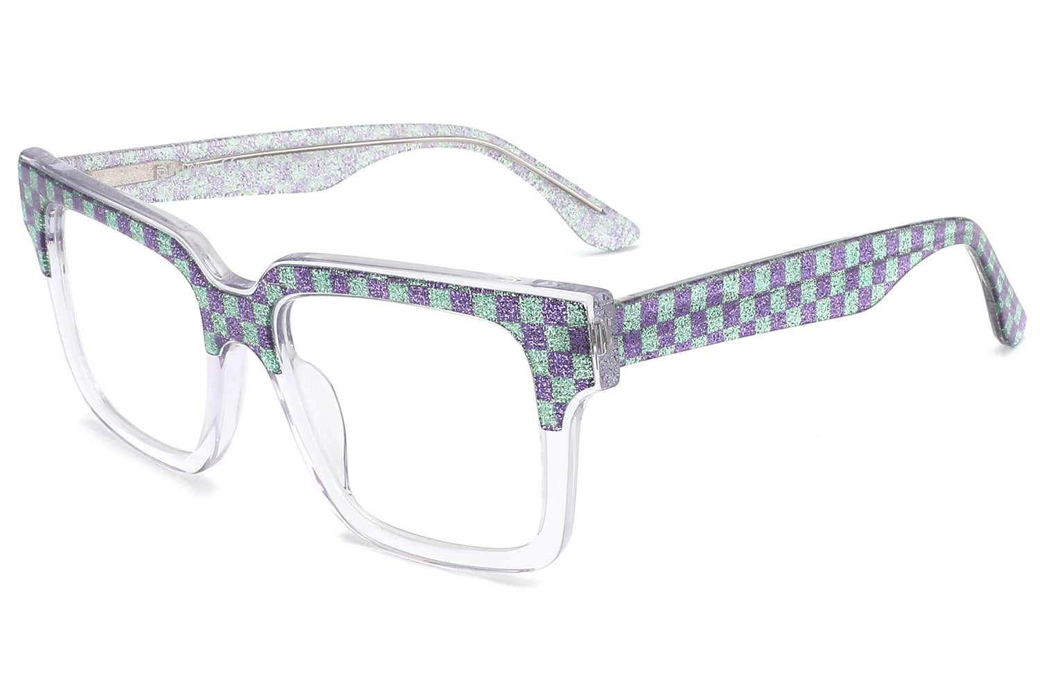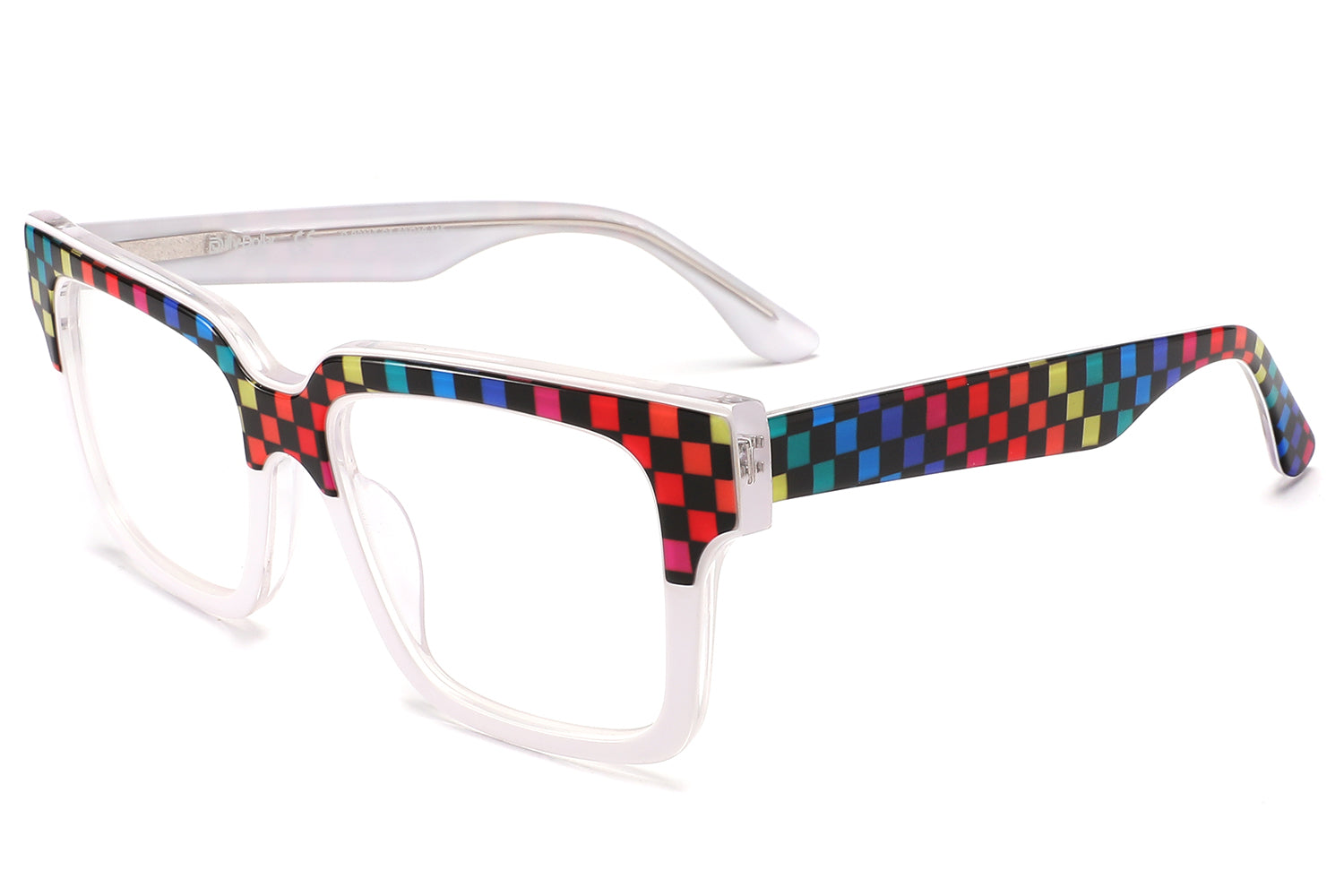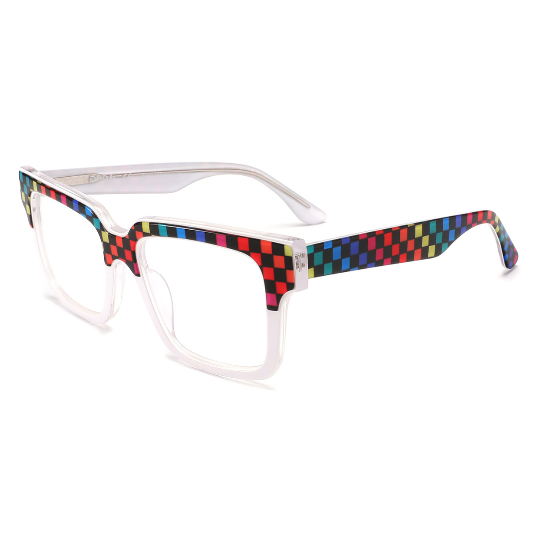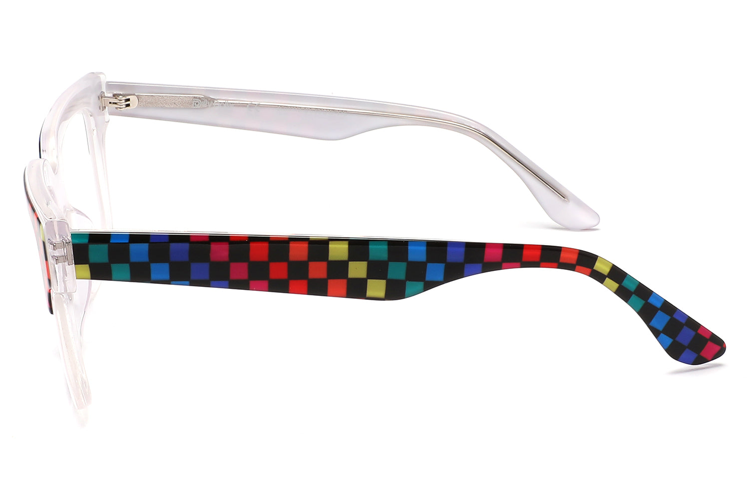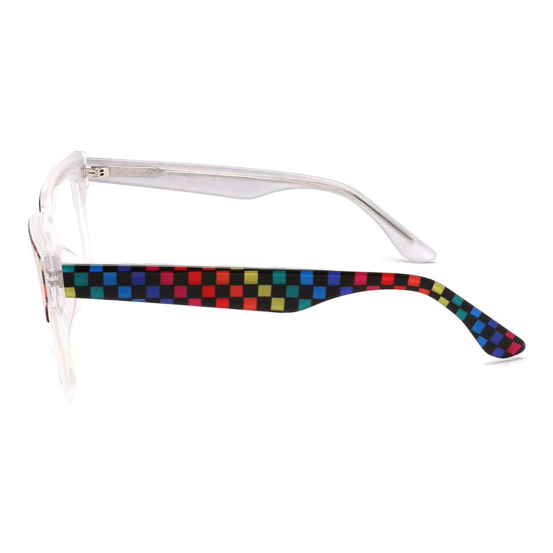 Acetate Eyeglasses with Colorful Checkered Design - Women's