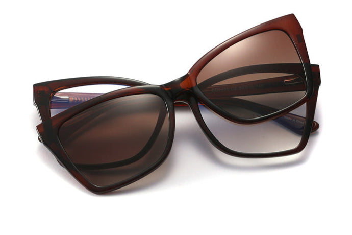 Add a warm, sophisticated touch to your look with these brown TR90 clip-on glasses. Featuring a lightweight build and versatile magnetic sunshade, this design blends style and function effortlessly—ideal for the modern woman on the go.