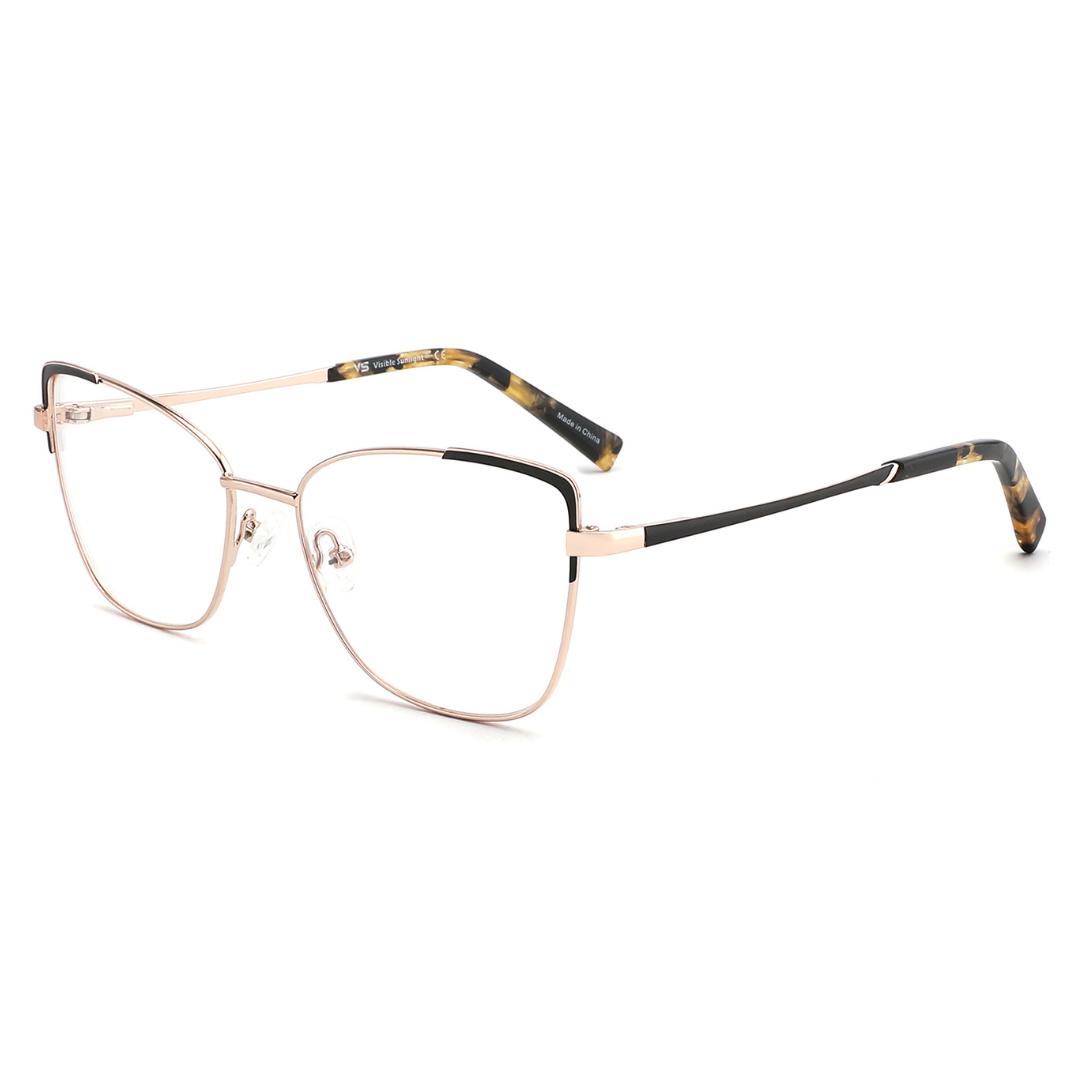 Chic Metal Frame Glasses with Acetate Arms & Spring Hinge (Women's Style)