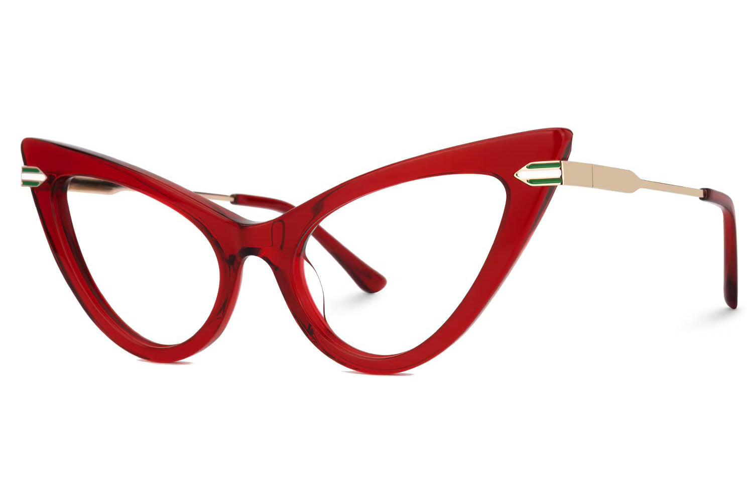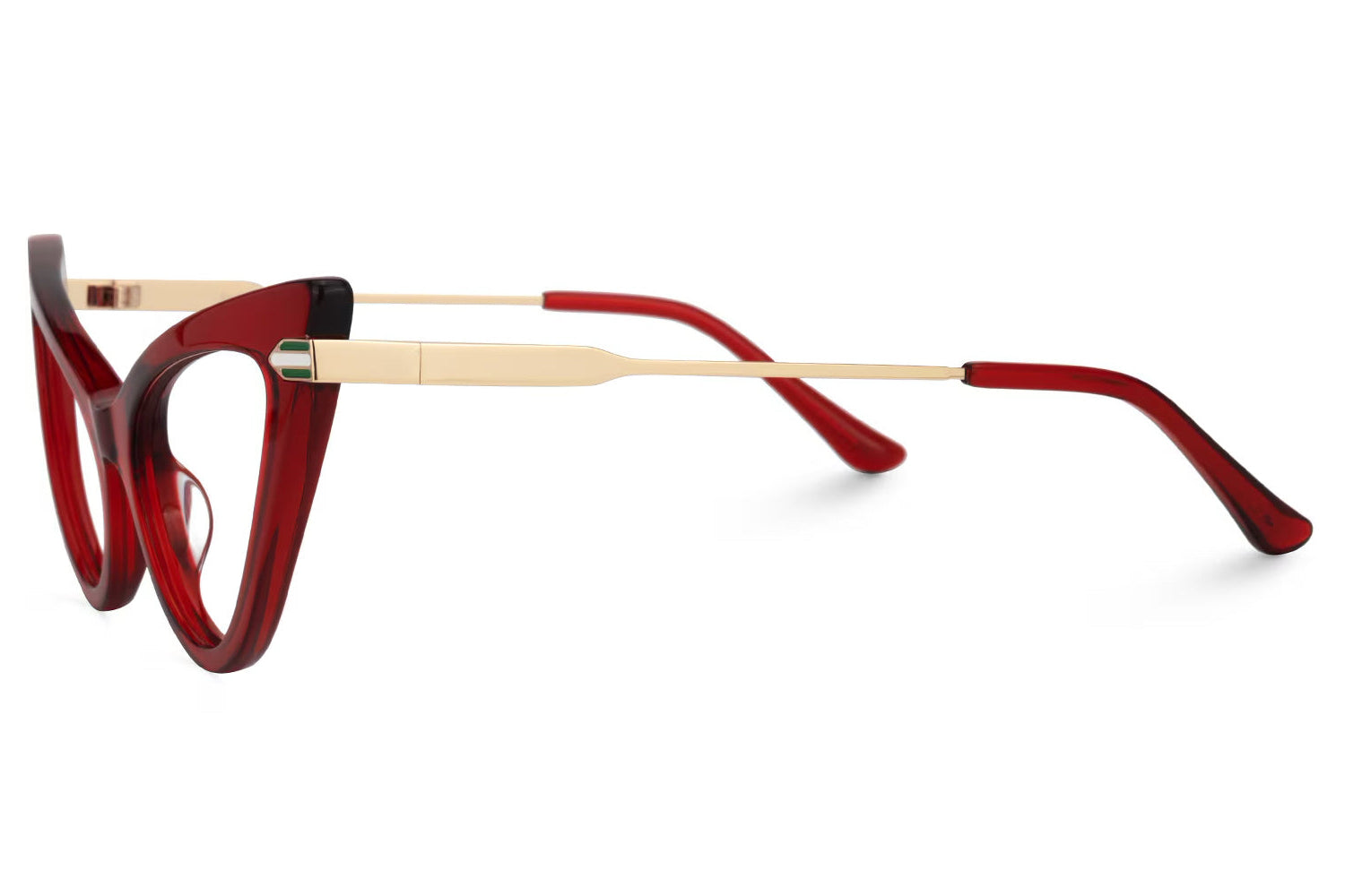 These striking red eyeglasses blend the timeless charm of acetate with the subtle luxury of metal accents. The frame, bold and eye-catching in vibrant red, is crafted from premium acetate ensuring durability and a glossy finish. Metal accents on the temples introduce a refined contrast, enhancing the overall elegance of the design.