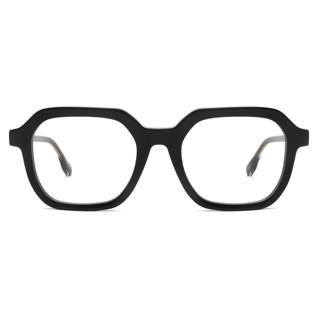 Experience cutting-edge style with these bold geometric acetate eyeglasses. The sharp, angular design not only makes a strong fashion statement but also offers a contemporary look suitable for both men and women. These glasses blend aesthetic appeal with functional design, perfect for everyday wear or making an impression at special events.