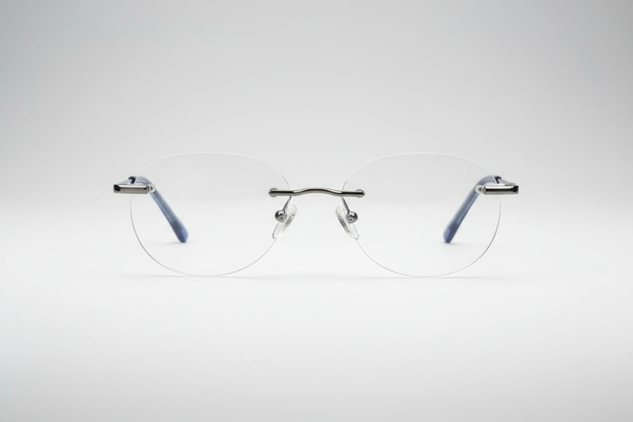 - Design: Rimless round silhouette for a clean, sophisticated, and modern aesthetic.