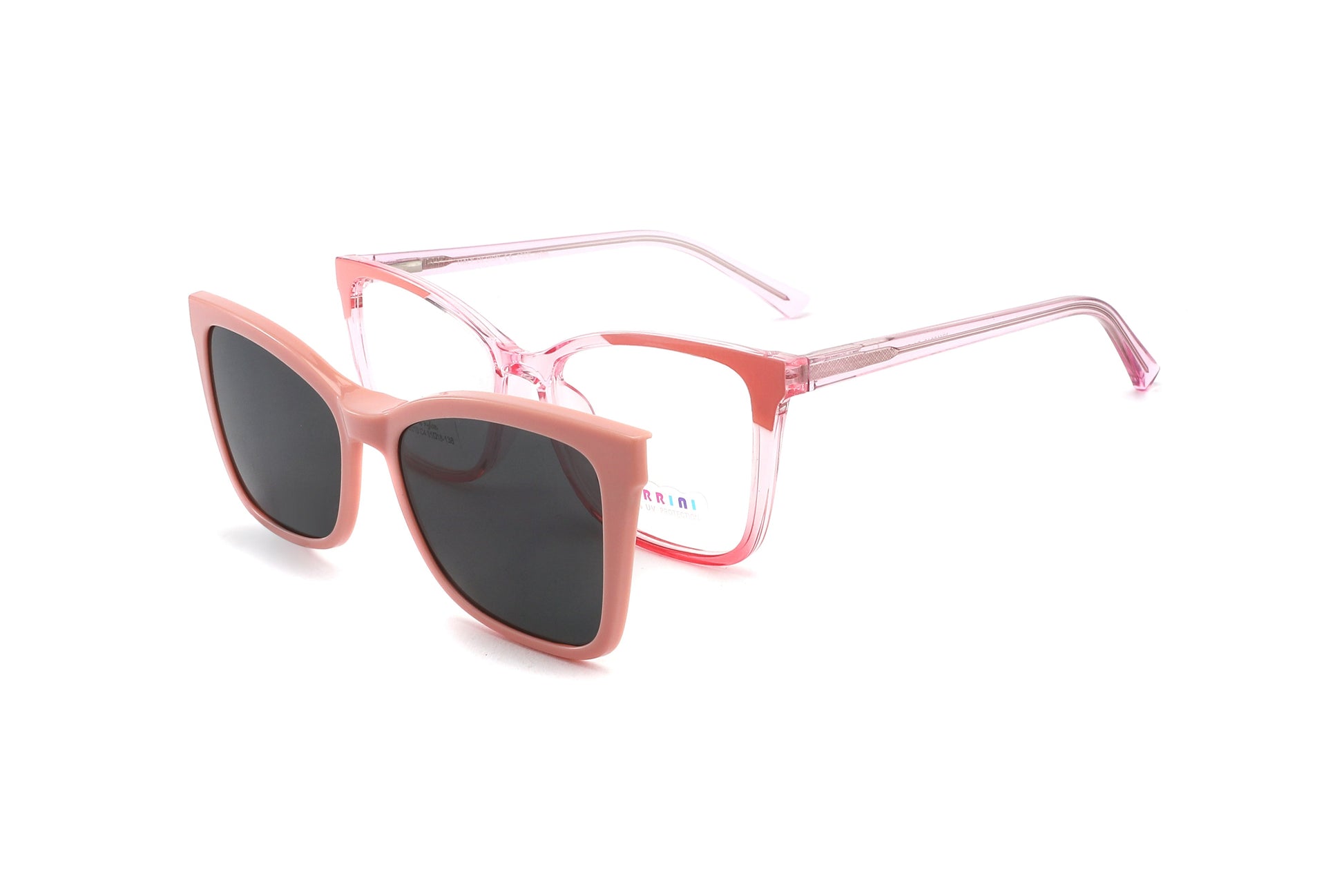 Embrace a pop of color with these vibrant multicolored eyeglasses crafted from Thermoplastic Resin (TR) with comfortable acetate temples. These eyeglasses comes with magnetic clip-on sunglasses lenses for a multifunctional 2-in-1 eyewear. Stand out with their bold, bright hues and contemporary design!