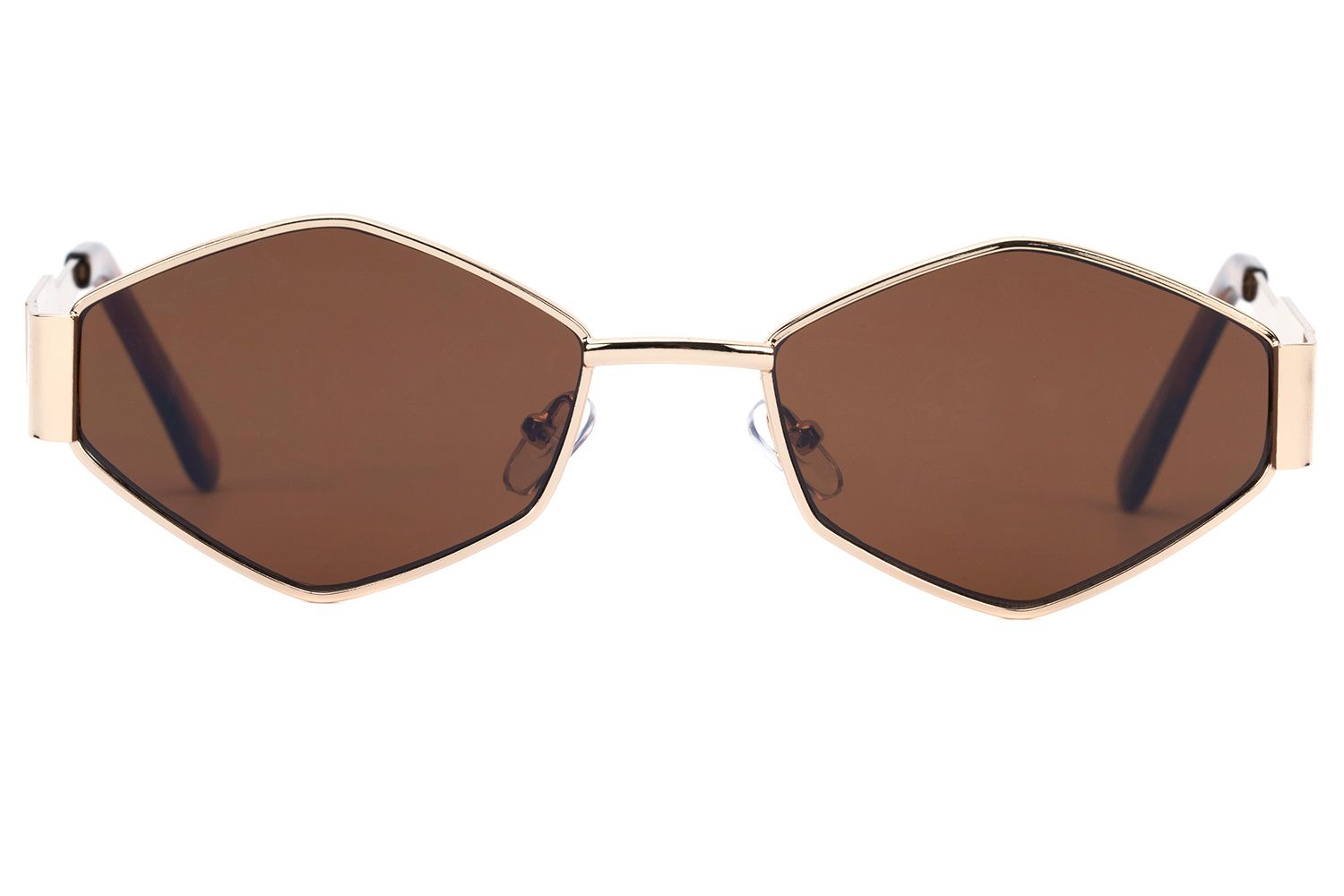 This pair of metal framed geometric shaped sunglasses are a perfect stylish accessory for a sleek and unique look. Its clean design with rose gold/silver accent metal frames can elevate your style that will bring out a picture perfect you.