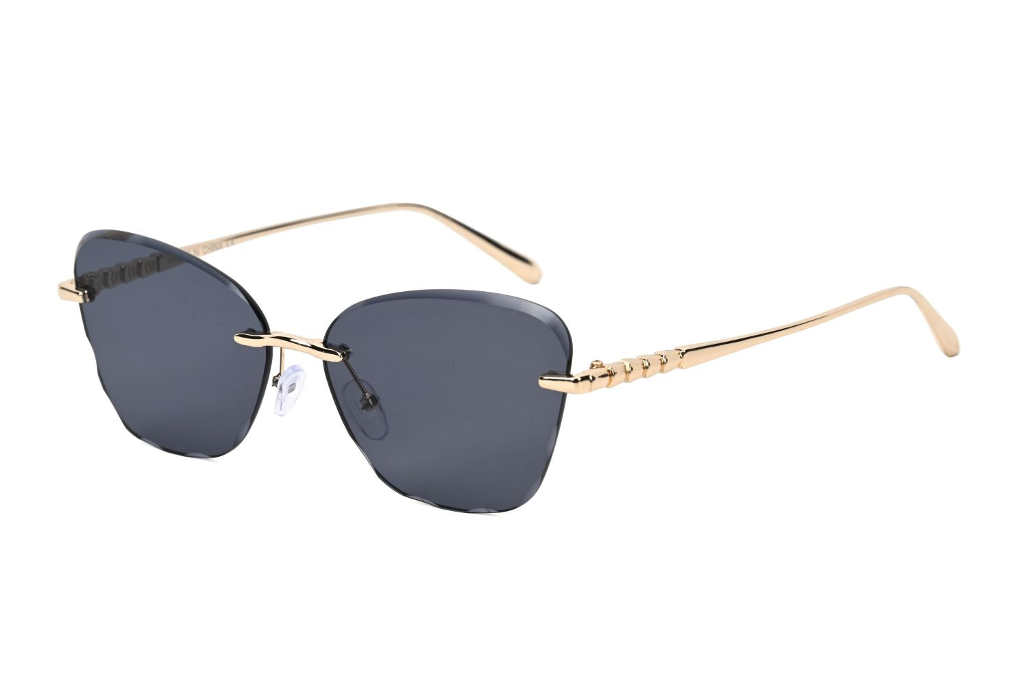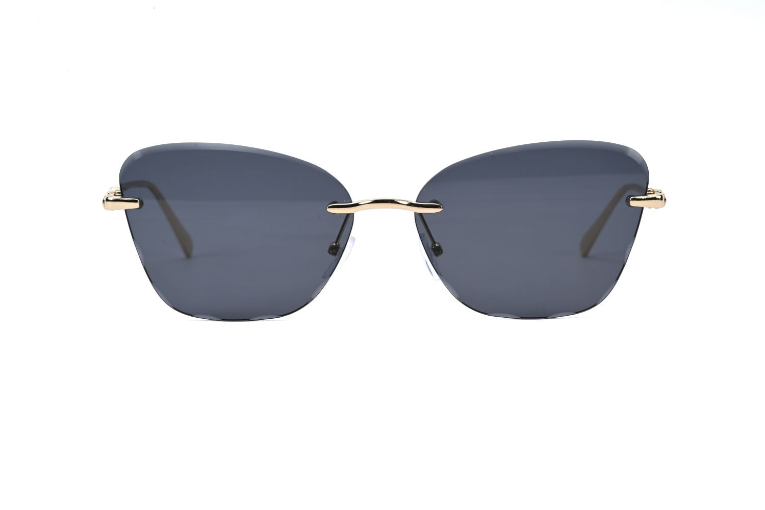 These elegant rimless sunglasses feature a soft butterfly-inspired lens shape that blends modern minimalism with feminine style. The lightweight metal temples and clean rimless construction create a sleek silhouette that is both fashionable and comfortable for everyday wear.