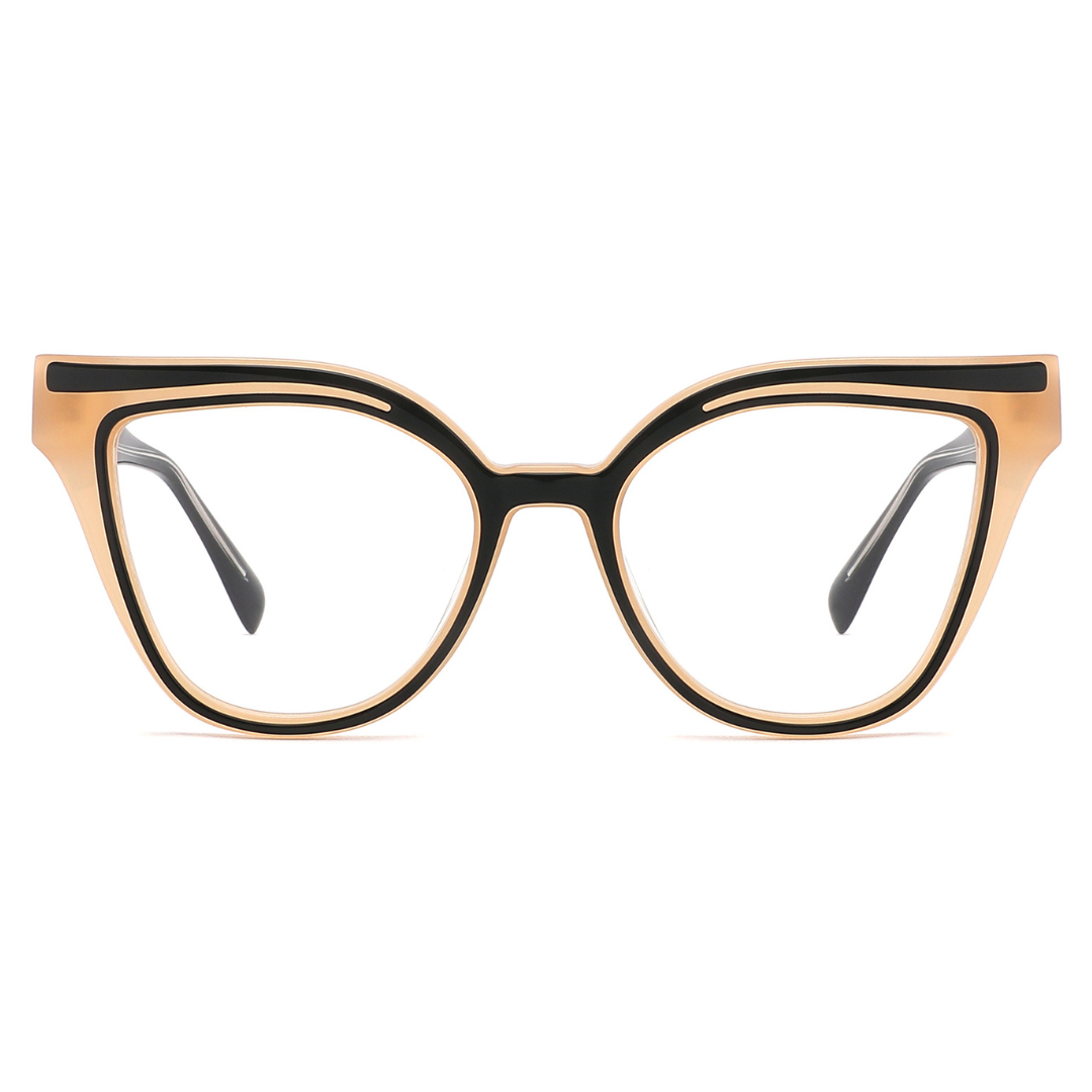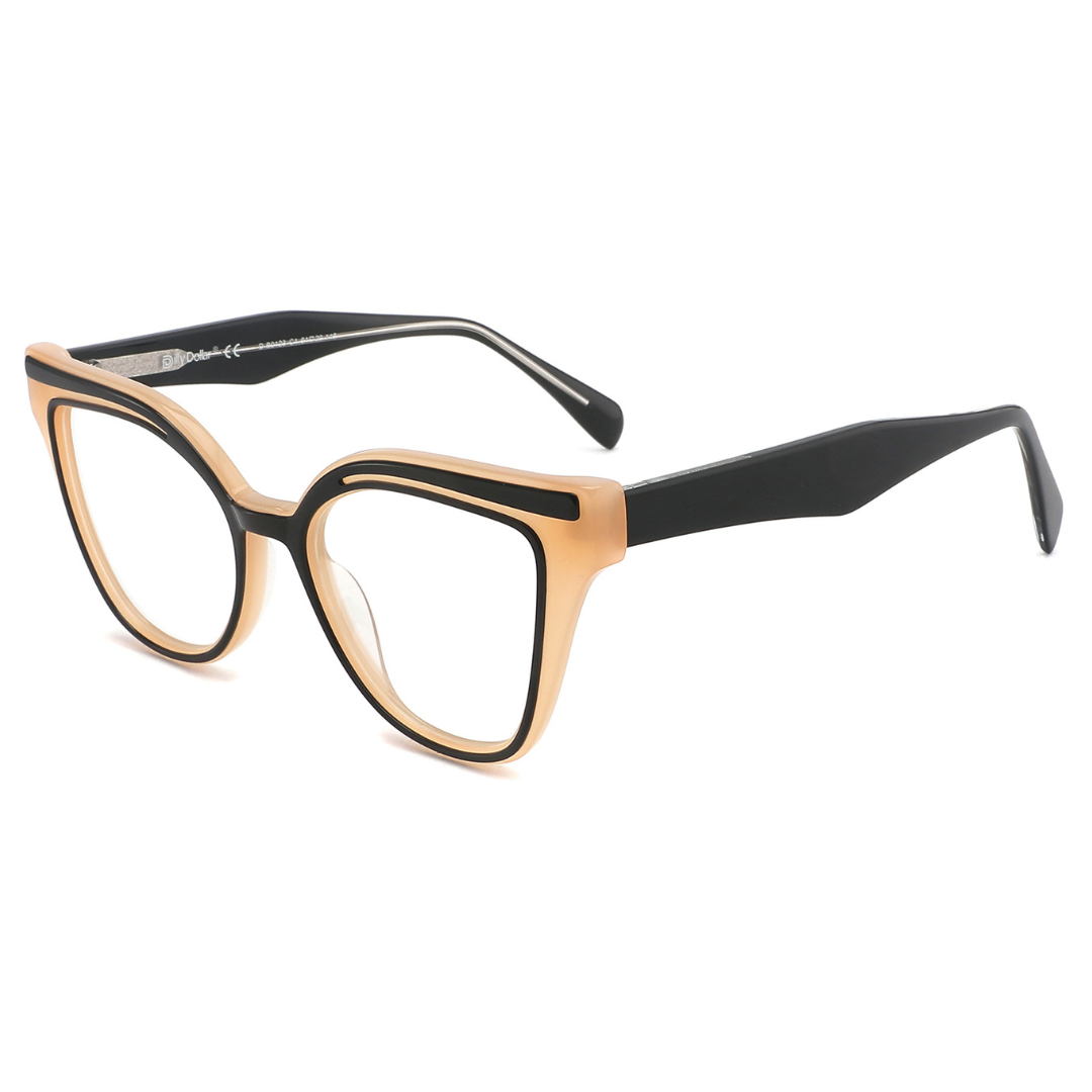 Elevate your eyewear game with these stylish acetate glasses, featuring a unique dual-tone design and durable five-barrel hinges for reliable performance and fashionable appeal.