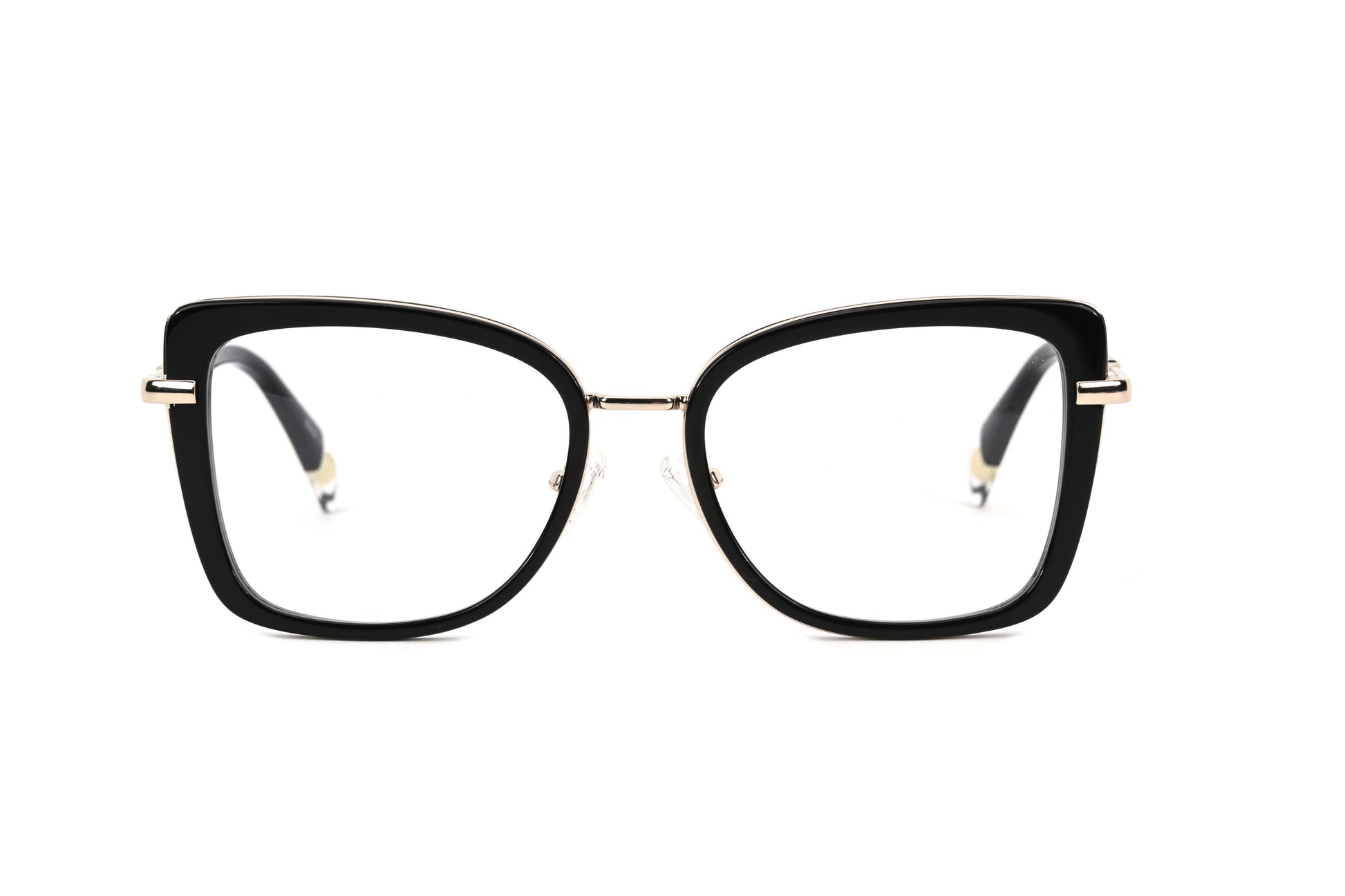These stylish glasses are seamlessly combined with polished metal accents. Featuring durable hinges, this pair offers a perfect blend of elegance and practicality, suitable for both men and women.