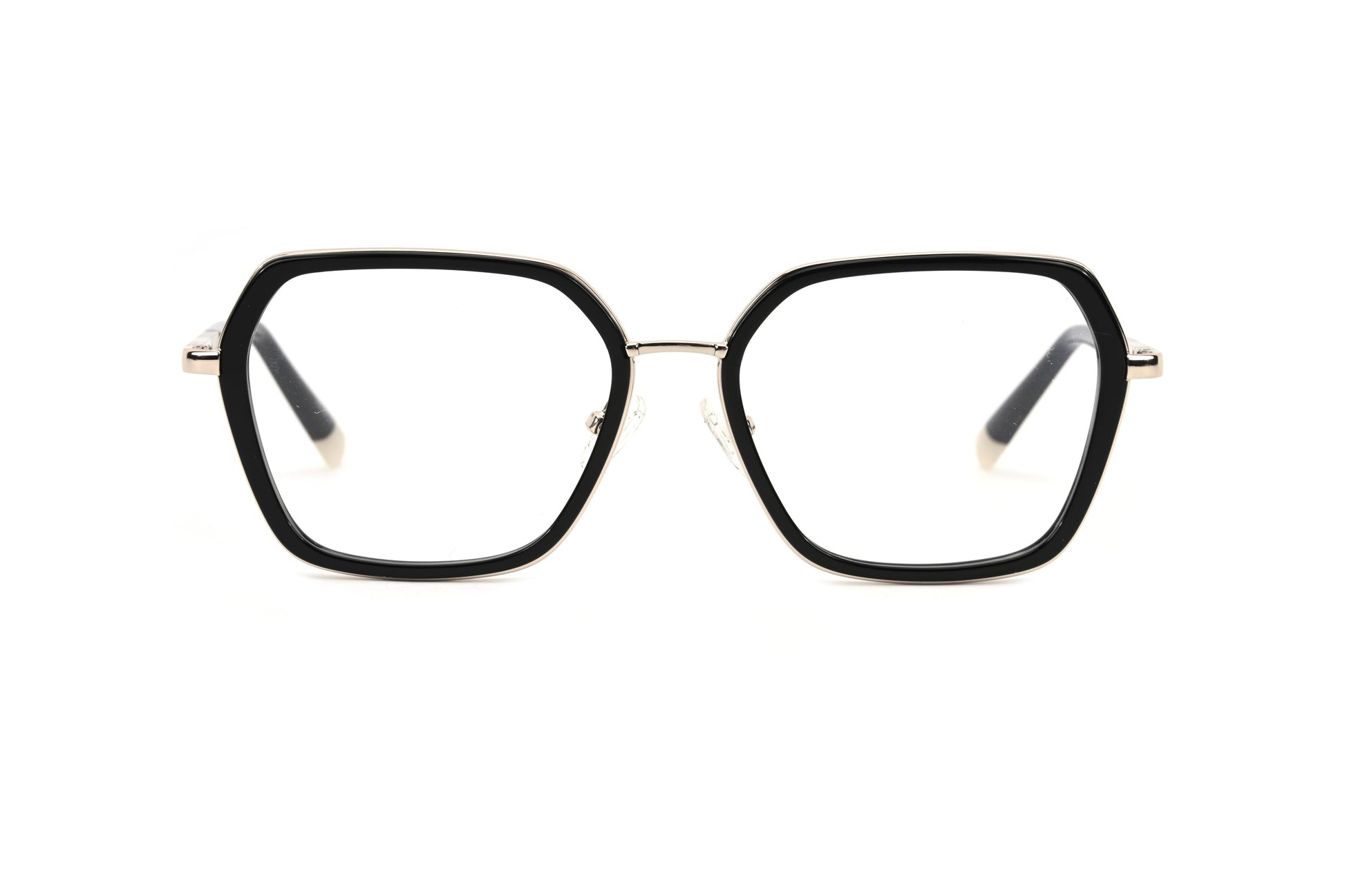 Make a bold yet refined statement with these modern geometric eyeglasses, crafted with a unique combination of metal and plastic. Featuring clean lines and a contemporary silhouette, this frame offers durability, style, and comfort for women.