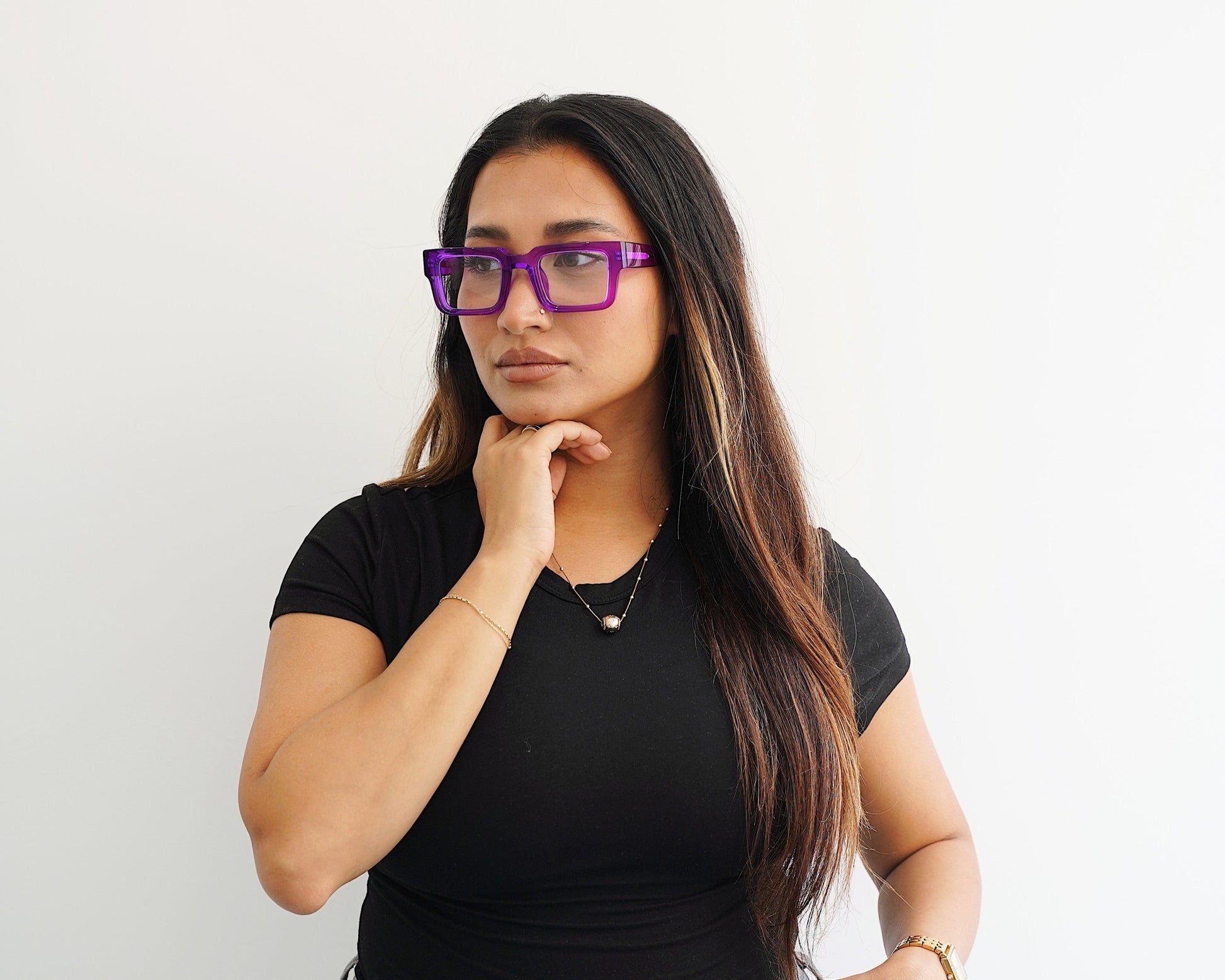 These oversized eyeglasses stand out with their striking pink acetate frames, perfect for those looking to make a bold fashion statement. The frames are built to last, equipped with five barrel hinges that enhance their durability and stability. This robust design ensures that the glasses can withstand daily wear while maintaining their aesthetic appeal.