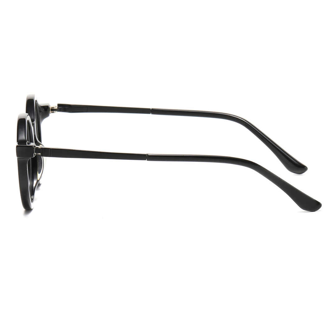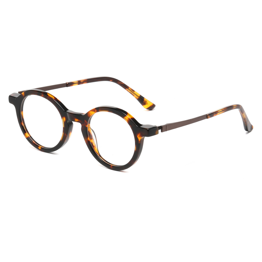 这副圆形眼镜是提升您外观的完美配饰!其经典简约的设计和光滑的镜腿将时尚与舒适融为一体。醋酸纤维+β钛合金镜框使镜框重量极轻,可装入任何类型的处方镜片。