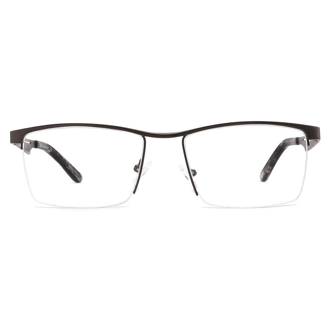 Semi-Rimless Metal Frame Glasses with Acetate Arms & Spring Hinge (Unisex's Style)