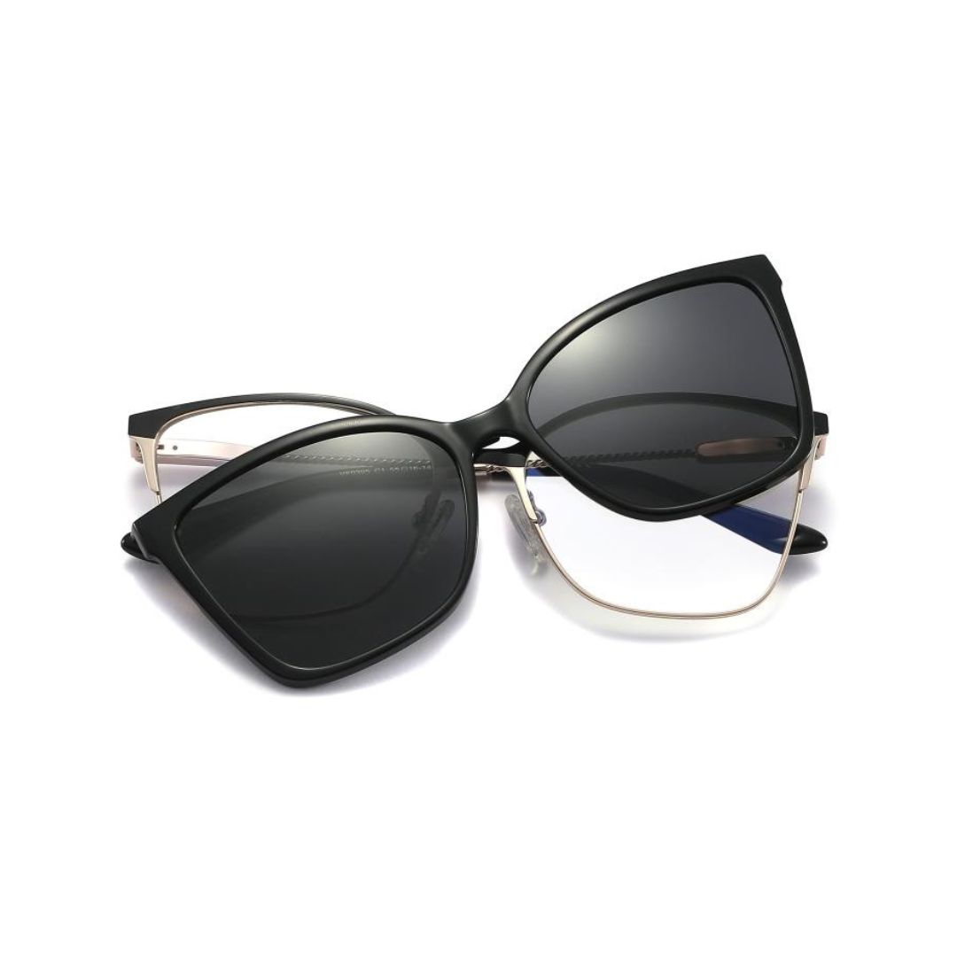 - Design: Classic wayfarer silhouette paired with a sleek clip-on for added versatility.